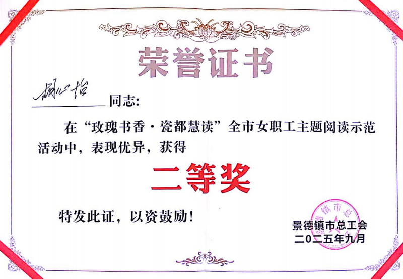9月19日下午,在景德鎮市總工會(huì )舉辦的“玫瑰書(shū)香 瓷都慧讀”全市女職工示范閱讀活動(dòng)中,陶博城公司女職工胡心怡、龔欣茹代表國控集團參賽,憑借情景朗誦作品《瓷間玫瑰,書(shū)香漫卷》脫穎而出,以 97.70分的優(yōu)異成績(jì)(位列第二),榮獲本次活動(dòng)二等獎!