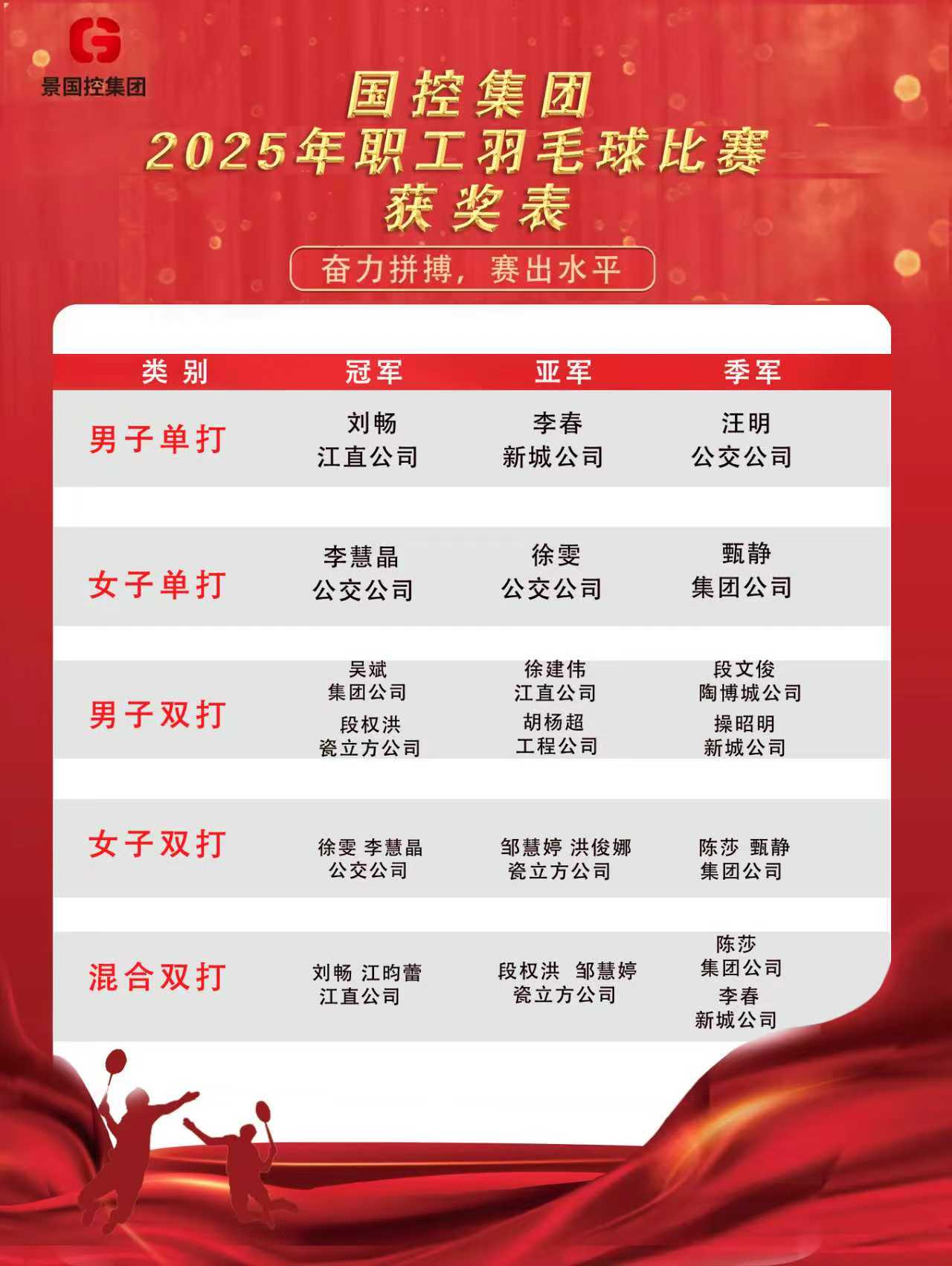 “羽動(dòng)國控,活力飛揚”——市國控集團2025年職工羽毛球賽成功舉辦!