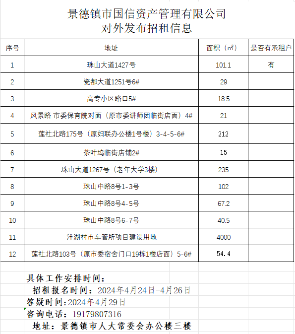 景德鎮市國信資產(chǎn)管理有限公司對外發(fā)布招租信息